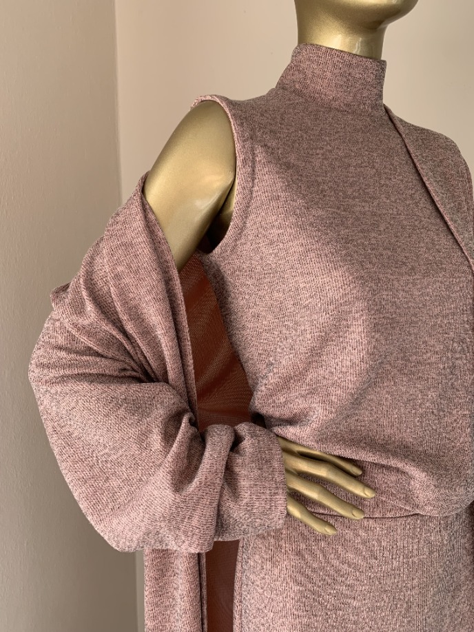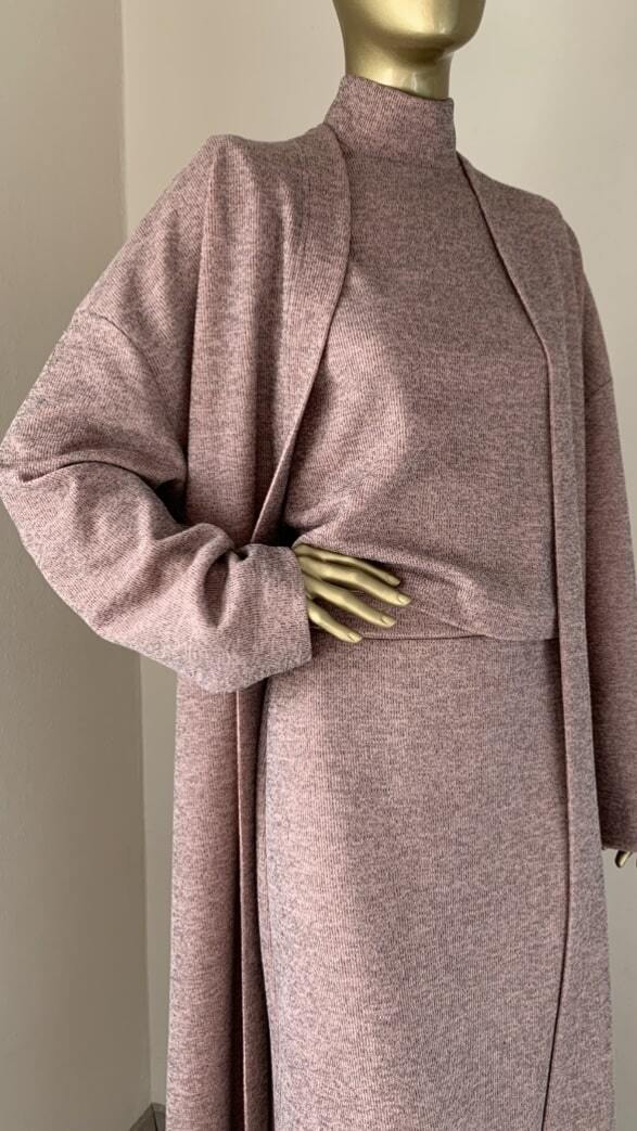 Üç parçadan oluşan bir takım tek başına da bir trend. Ayrıca gardırobunuzu genişletmek için harika bir çözümdür - diğer şeylerle birleştirebilir ve güzel bir kombinasyon oluşturabilir. Stokta olan ürün uzundur, 170 sm boyunda zemine kadardır.