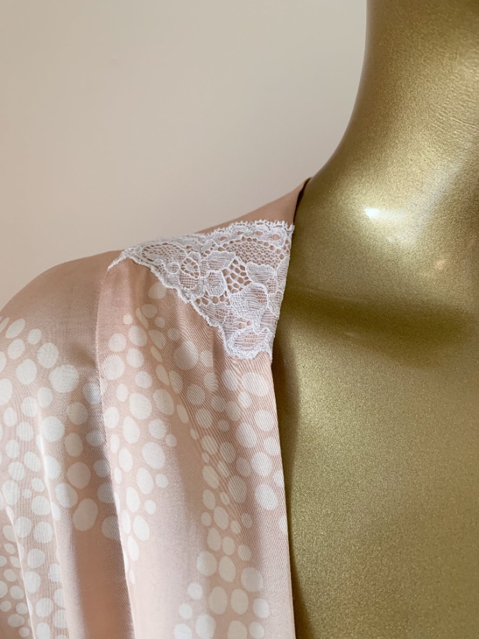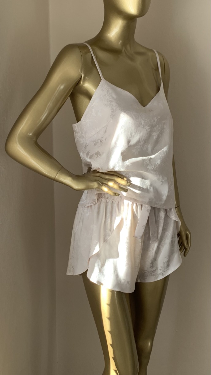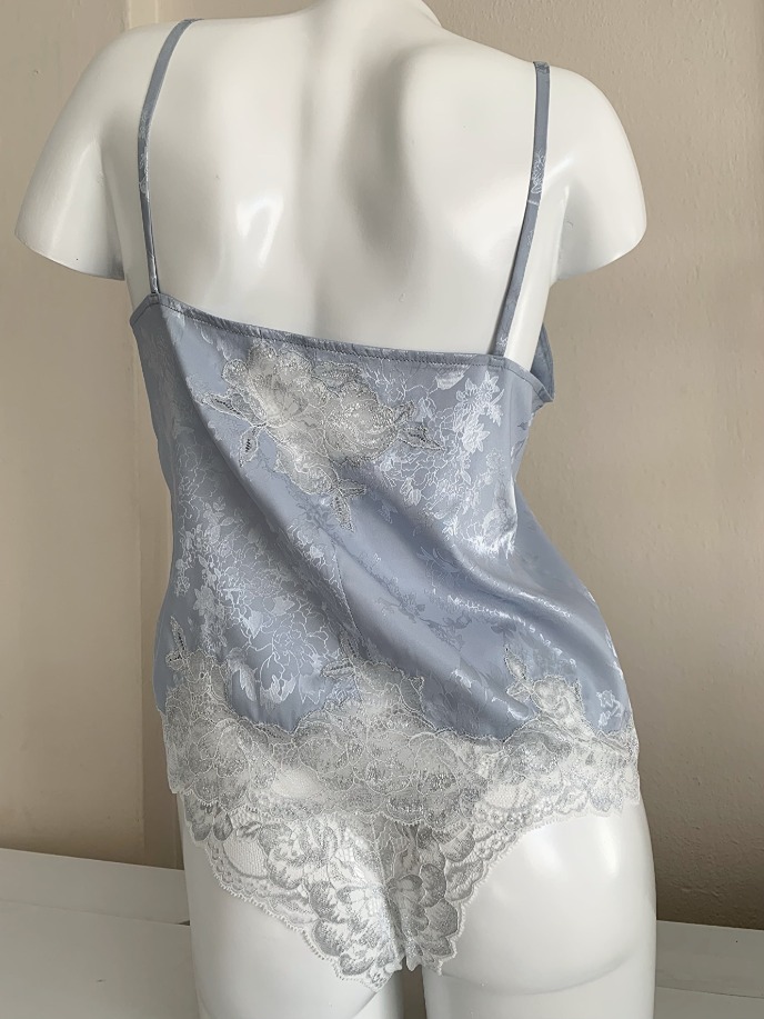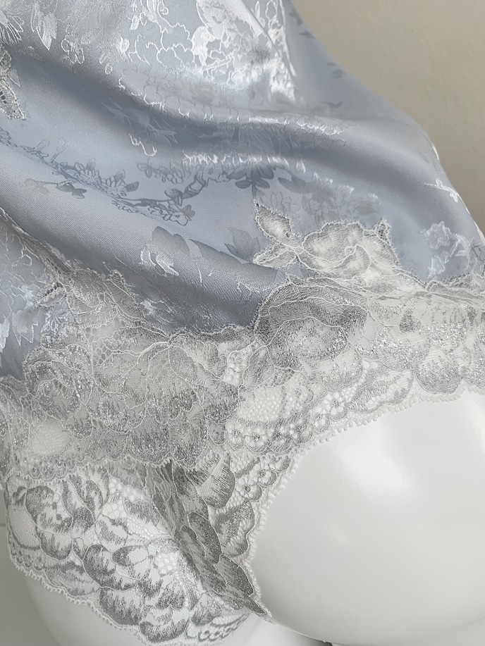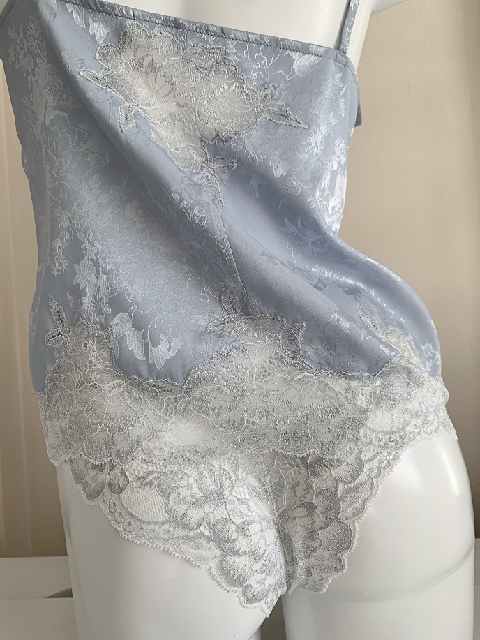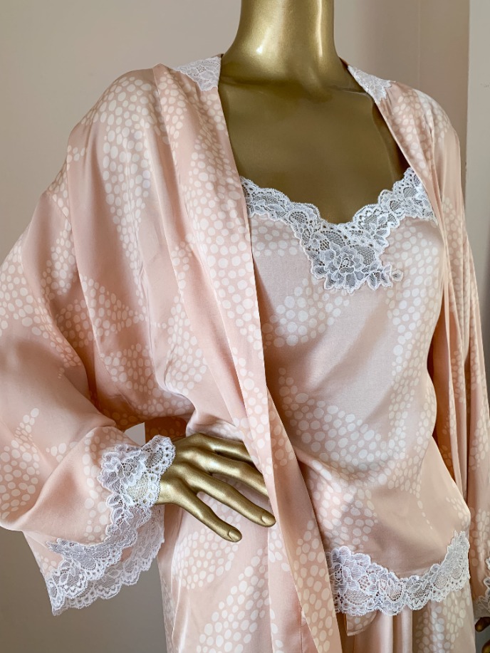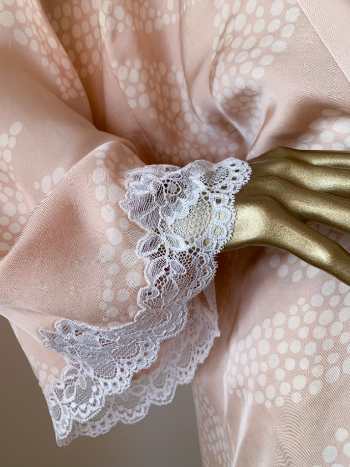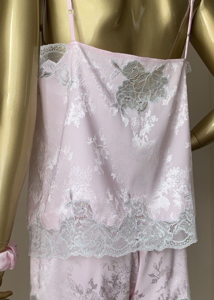 Haute Couture tekniğiyle işlenmiş dantelli pamuklu saten takım, gecelerinize ve sabahlarınıza bir lüks dokunuşu katar
