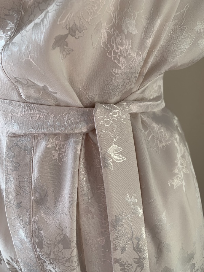 Dokuma kumaş yapısı ile konforlu bir kullanım sunar ve saten dokusuyla zarif bir görünüm sağlar