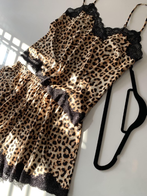 Leopar Desenli Dantelli Üst & Şort Uyku Seti