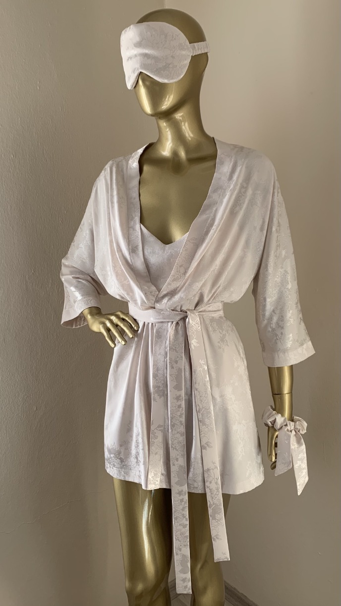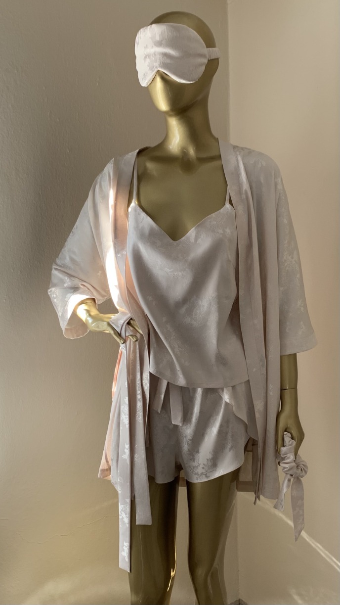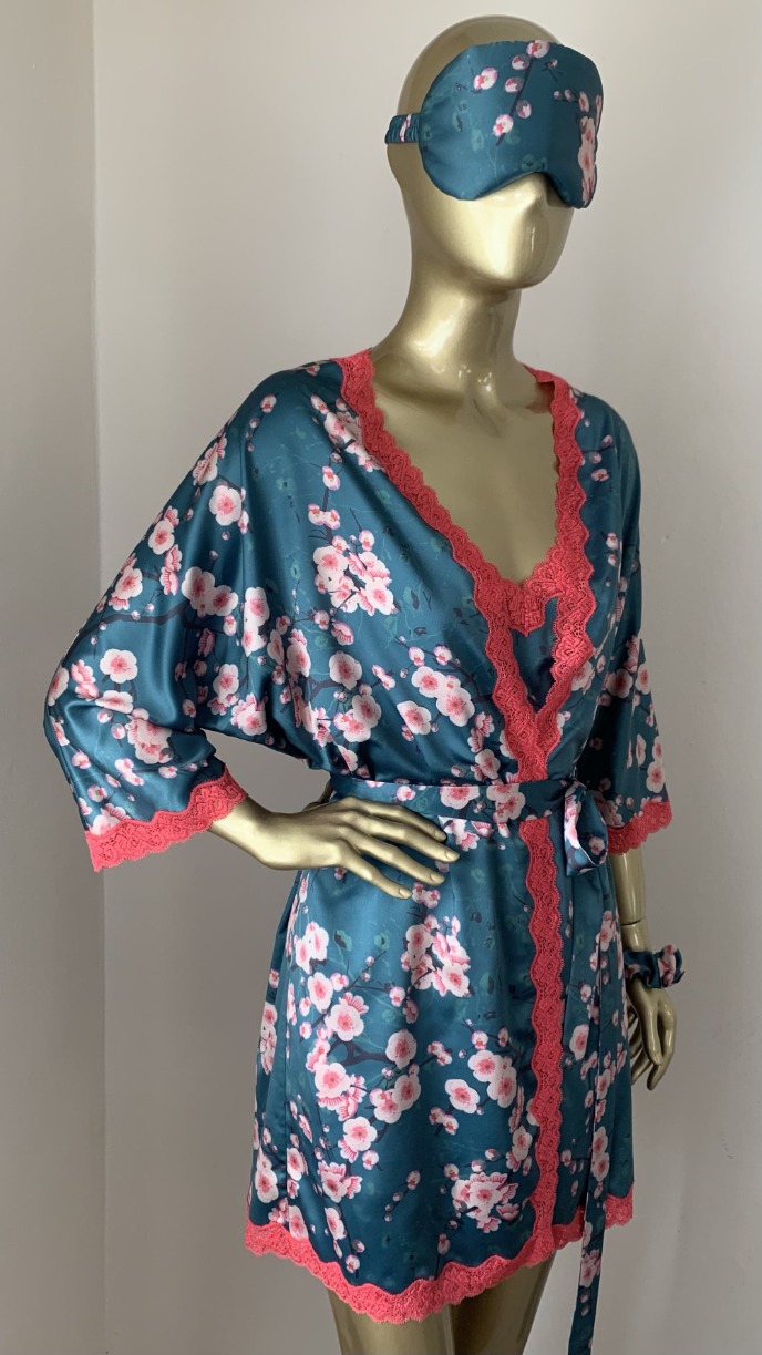 Saten Dantelli Sabahlık, Üst, Şort, Uyku Maskesi, Toka - 5'li Seti